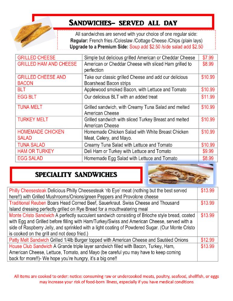 The menu at Minneola Grill features a delightful selection of traditional American dishes. Omelets, specialty sandwiches, and comfort food take center stage. Diners can find items like the Philly cheesesteak and Monte Cristo, alongside classic grilled cheese. Prices range from $6 to $13, making meals both satisfying and affordable. Shared portions create a sense of community and make dining here even better.